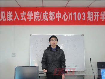 結(jié)束十天的基礎(chǔ)補(bǔ)習(xí),經(jīng)過(guò)清明假期的短暫休整后,2011年4月6日華清遠(yuǎn)見(jiàn)教育科技集團(tuán)成都中心1103期就業(yè)班正式開(kāi)班,并于當(dāng)天上午九點(diǎn),在成都中心嵌入式實(shí)驗(yàn)室二隆重舉行了開(kāi)學(xué)典禮。