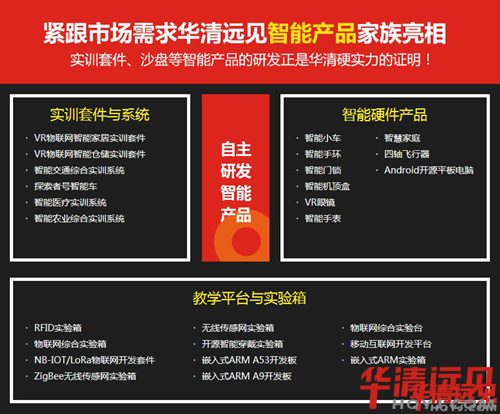近年來隨著國家政策對智能領(lǐng)域的看重,智能硬件也被列入國家“十三五”規(guī)劃的重點(diǎn)發(fā)展對象,加之智能硬件行業(yè)人才緊缺,華清遠(yuǎn)見順應(yīng)行業(yè)大勢推出與之對應(yīng)的嵌入式和物聯(lián)網(wǎng)課程,自主研發(fā)了多款智能項目實(shí)訓(xùn)系統(tǒng)及教學(xué)設(shè)備,提供嵌入式/物聯(lián)網(wǎng)/大數(shù)據(jù)/云計算/VRAR等高校實(shí)驗室解決方案,擴(kuò)展搭配多樣化的實(shí)戰(zhàn)項目,包括智能家居、智能交通、智能醫(yī)療、智能農(nóng)業(yè)、智能倉儲物聯(lián)網(wǎng)系統(tǒng)等,讓學(xué)科實(shí)驗更豐富。華清遠(yuǎn)見“培訓(xùn)+研發(fā)”雙引擎,共同打造智能硬件行業(yè)硬實(shí)力。