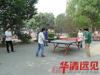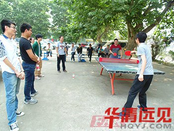 比賽在緊張激烈的進行,而等待上場的隊員們也沒 閑著,在比賽場旁邊的空地,有的打羽毛球,有的打籃球,更多的是給場上的隊員加油助威!由于之前兩位隊員都進行了激烈的比賽,所以在乒乓球決賽正式開始 前,兩位隊員都申請休息。稍作休息之后,乒乓球決賽正式開始。所謂高手過招,分毫必爭,你一個旋風球,我一個掉高球,左攻右守,各不相讓�?嫉氖羌夹g(shù),比 的是心態(tài)。終鄧同學獲勝。