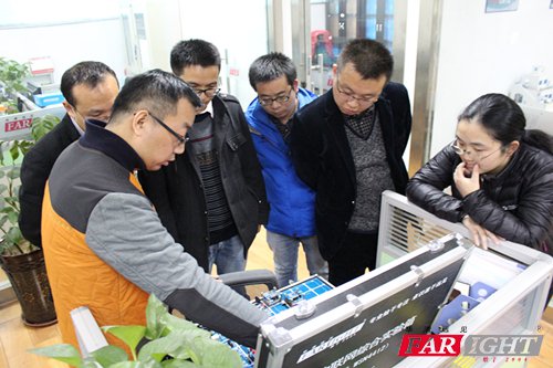 聽成都中心李老師講解物聯(lián)網(wǎng)綜合試驗箱 高校老師們還在陶校長的陪同下,走進(jìn)學(xué)生們上課的教室進(jìn)行了參觀,近距離地了解了學(xué)生們的學(xué)習(xí)環(huán)境,感受學(xué)習(xí)氛圍,對學(xué)員們刻苦認(rèn)真的學(xué)習(xí)態(tài)度進(jìn)行了贊賞,并對華清遠(yuǎn)見在學(xué)員管理上的嚴(yán)格要求和學(xué)生就業(yè)方面的全方位服務(wù)給予了高度評價。參觀完畢,一高校老師對我們說:如果學(xué)校沒有課的話,我愿意自費來華清進(jìn)修學(xué)習(xí)!