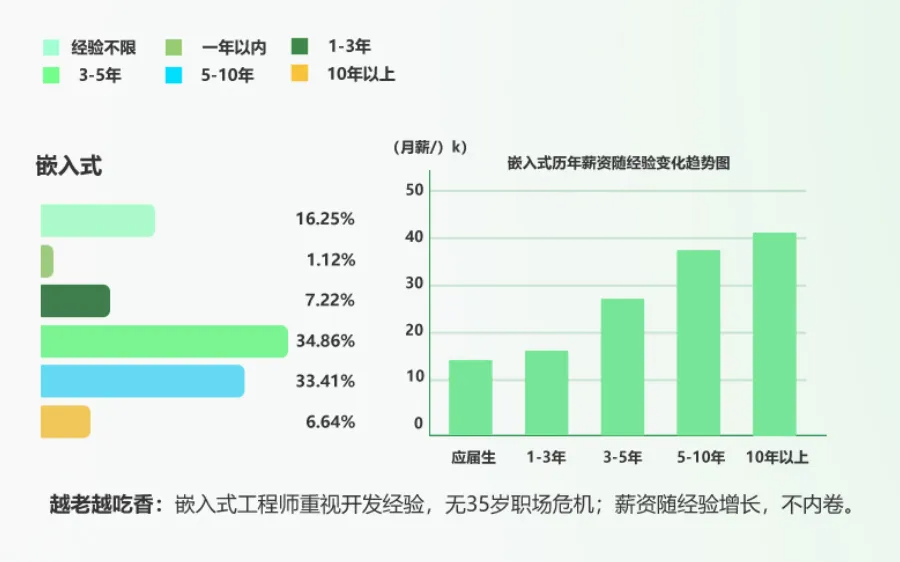 當(dāng)然,所謂的“35歲+年齡危機(jī)”也在裁員事件中讓很多在職者陷入職場(chǎng)焦慮。相反,嵌入式領(lǐng)域及相關(guān)崗位對(duì)于工作經(jīng)驗(yàn)豐富的職場(chǎng)人士更為友好。