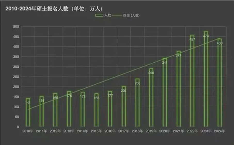 而2024 年全國碩士研究生考試報名人數(shù)為 438 萬