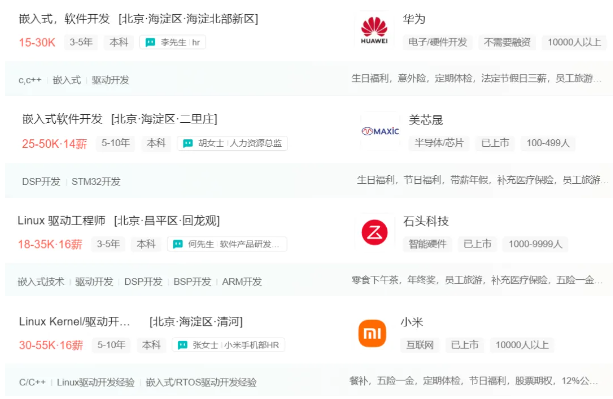 具體崗位也會有具體的技術(shù)要求,例如C\C++、DSP開發(fā)、STM32開發(fā)、ARM開發(fā)、驅(qū)動開發(fā)經(jīng)驗等等。