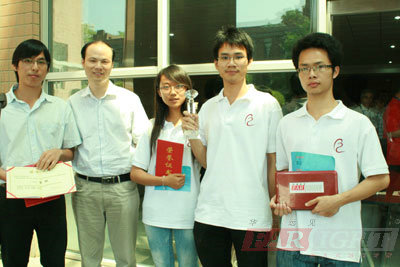 “博創(chuàng)杯”電子大賽中獲獎(jiǎng)同學(xué)與張文濤老師合影