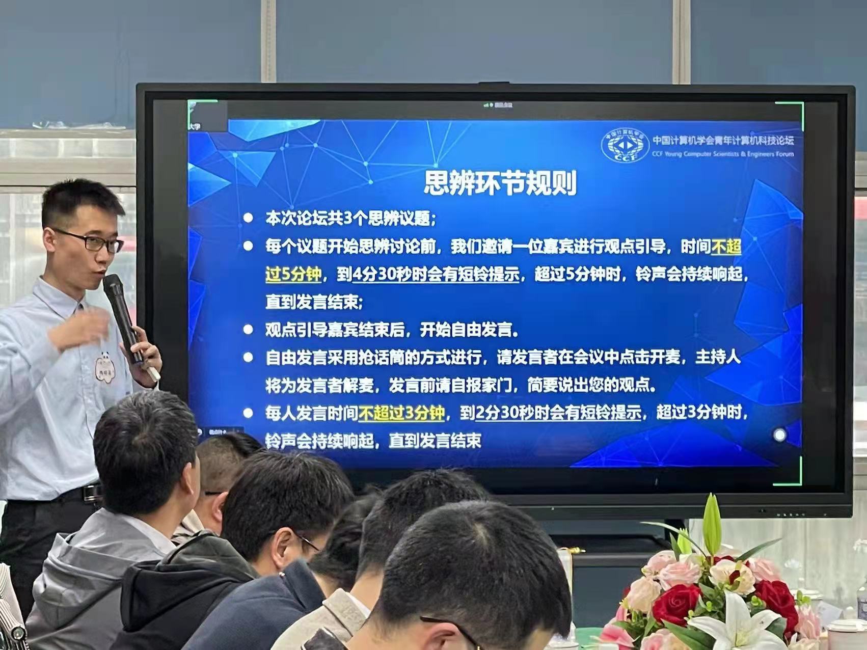 論壇開始,CCF YOCSEF成都2021-2022年主席、西南石油大學(xué)計算機科學(xué)學(xué)院教授彭博分別講解了CCF YOCSEF的歷史、構(gòu)成和宗旨,介紹了舉行本次活動的初衷、議程和規(guī)則。此次論壇分為嘉賓引導(dǎo)發(fā)言和互動思辨兩個環(huán)節(jié)。在引導(dǎo)發(fā)言環(huán)節(jié),來自成都通甲優(yōu)博科技責(zé)任有限公司,聯(lián)合創(chuàng)始人&CTO龍學(xué)軍、新網(wǎng)銀行,信息科技部大數(shù)據(jù)中心負(fù)責(zé)人陳思誠、深圳市網(wǎng)聯(lián)安瑞網(wǎng)絡(luò)科技有限公司,成都區(qū)域中心主任賈宇等分別圍繞著論壇主題,作了《人工智能技術(shù)在智慧交通領(lǐng)域中的應(yīng)用探索》、《銀行數(shù)據(jù)智能建設(shè)與思考》、《AI項目開發(fā)的挑戰(zhàn)與應(yīng)對》等主題演講。