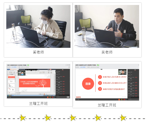 為進一步服務好大學生,幫助學生達到甚至超過在線下進行工作實習的效果,全面推進線上職業(yè)能力教育再升級,最終完滿完成本次智能家居的線上實訓工作,華清老師前期做好學生線上排班工作、組織相關權限開通、提前測試網絡等問題,保障實習效果的通暢、順利進行,4月7日在班主任奚老師主持下進行了開班典禮,規(guī)范了班級日度和學生們需要做的每日內容(簽到、日志等);校企合作吳經理也做了開班致辭,用多年的經驗分享AI市場和疫情后的IT發(fā)展趨勢、分析當代大學生如何做好職業(yè)規(guī)劃等問題。