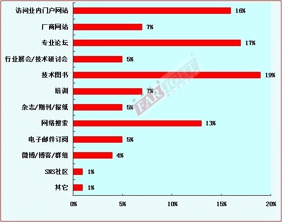 來自2011-2012年度的調(diào)查數(shù)??顯示,“技??圖書、專業(yè)???壇、???問業(yè)內(nèi)門戶網(wǎng)站、網(wǎng)絡(luò)搜索”是嵌入式工程師獲取知識(shí)的主要途徑(接??70%),各項(xiàng)所占比例分????19%??17%??16%??13%,其??技??圖書一項(xiàng)比例相對去年有3??百分比的增漲。除了以??4大途徑外,部分工程師也會(huì)通過專業(yè)技能培??、廠商網(wǎng)站、???業(yè)展會(huì)/技??研???會(huì)、微??/博???/群組、雜??/期刊/報(bào)紙、電子郵件???閱、SNS社區(qū)等途徑獲取信息。從2004年至今,華清遠(yuǎn)???提供的免費(fèi)電子圖書、??????教程等資料每年平均下載次數(shù)已達(dá)到十多萬,這也可以從另一??側(cè)面反映出業(yè)內(nèi)工程師的???習(xí)需求和學(xué)習(xí)方式??