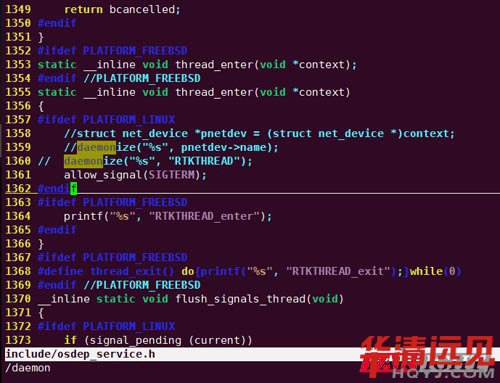 在linux/osdep_service.h下,注釋掉1360行對(duì)應(yīng)的daemonize(“%s”,”RTKTHREAD);