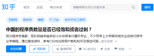 前段時間,知乎熱搜榜上出現(xiàn)一個讓程序員聞之色變的問題:“中國程序員數(shù)量是否已經(jīng)飽和或者過剩?”頓時網(wǎng)上一片焦慮的聲音。